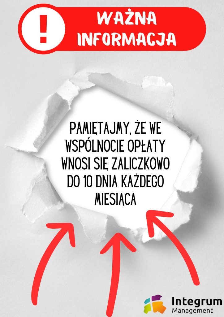 Prosimy o terminowe płatności do 10-go dnia każdego miesiąca.